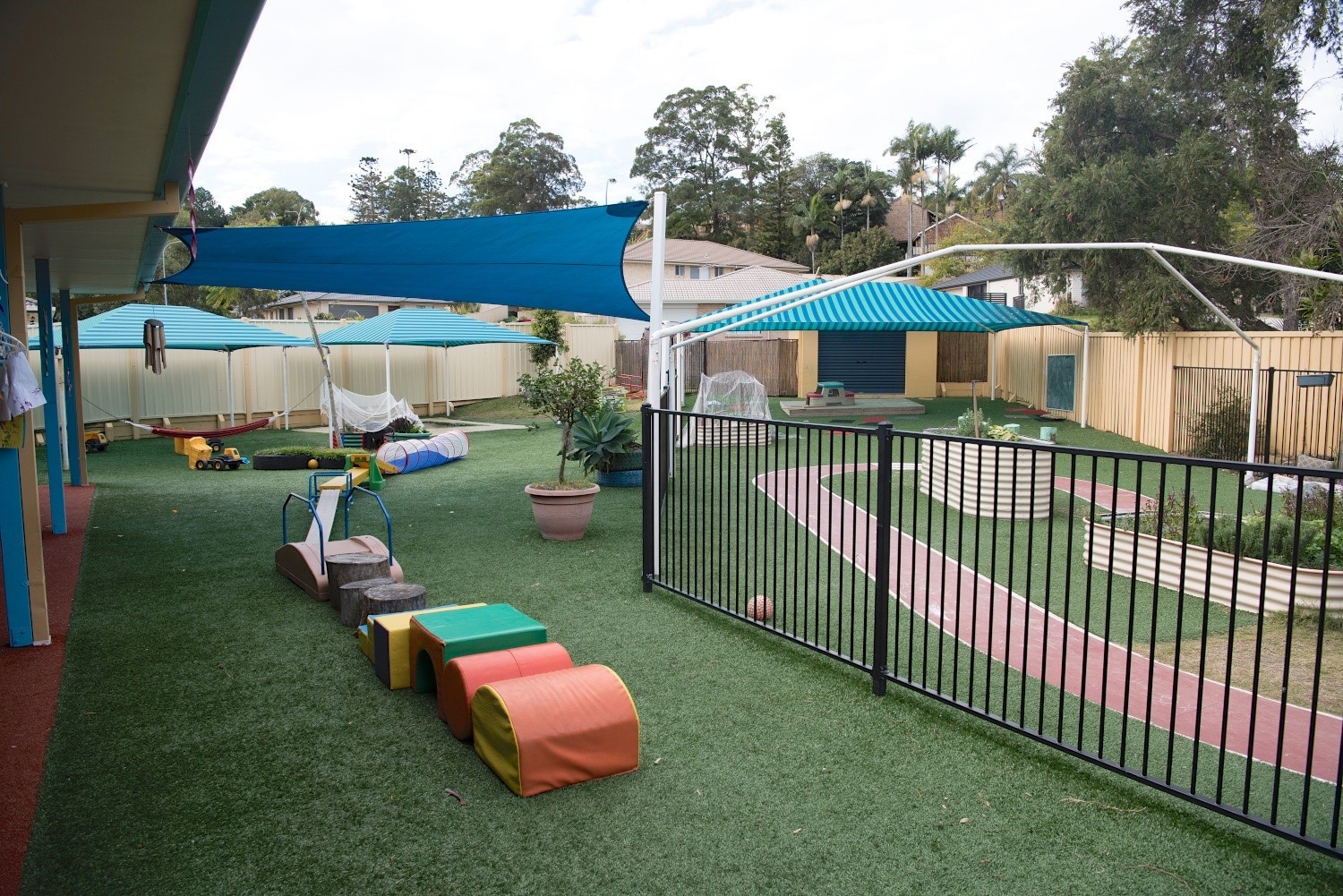 Outdoors, we have two spacious playgrounds, each with big gardens where we grow vegetables and herbs, sandpits and natural surround to provide experience and sensory-based learning around themes of sustainability, diversity and the environment.