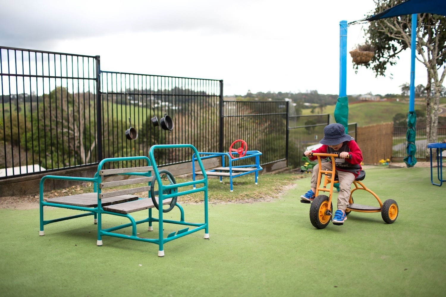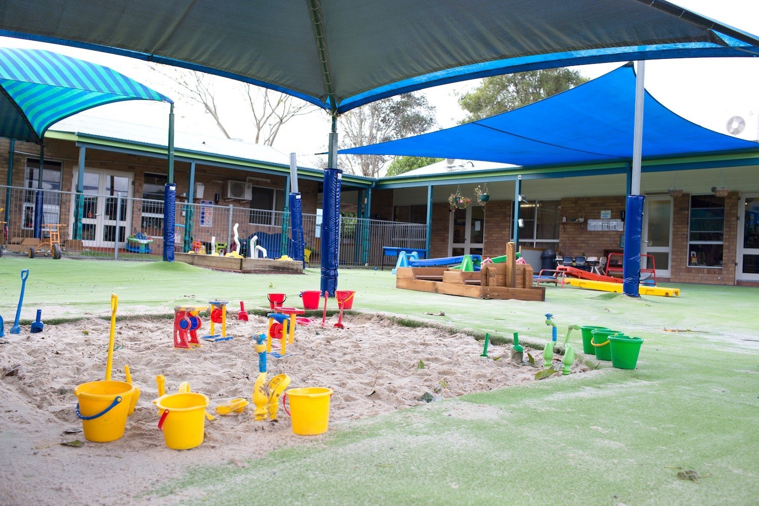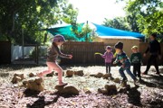 Outside, we have age appropriate play spaces and equipment, all geared to enhance the children’s awareness of their surrounds and the greater environment, as well as their understanding of the importance of sustainability. Our two playground areas have sandpits, a tiered stage, a double slide, vege patch, worm farm and compost bin, lots of shade and beautiful gardens throughout.