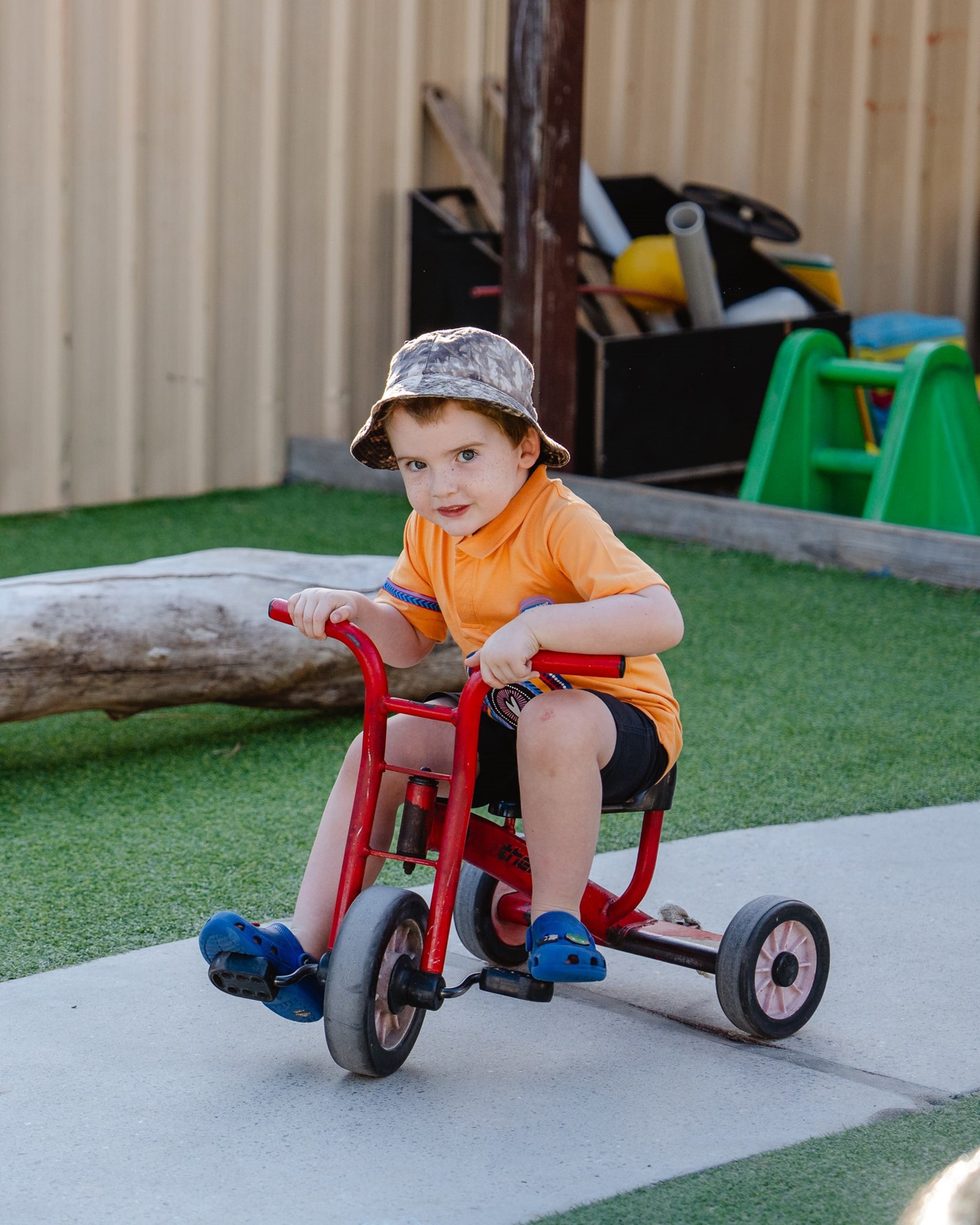 Your child will love the inspiring outdoor environments designed to inspire their curiosity. Across three spacious yards, we have a construction play zone where children can build and create, chickens, a rabbit, a worm farm, a veggie and herb patch, a mud kitchen, sandpits, a Balinese hut, a fort, climbing and obstacle courses, and lots of beautiful trees for shade.